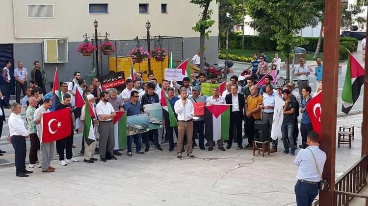 Mavi Marmara Gemisi’ne yönelik saldırı 6. yıl dönümü Merkez Camisi önünde İHH Yalova Temsilciliği tarafından gerçekleştirilen protesto ile kınandı. Vatandaşlarında ellerinde Filistin bayraklarıyla destek verdikleri protesto da konuşan İHH Yalova İl Temsilcisi Sabri Kan, "Mavi Marmara, Filistin yürüyüşümüzün bir parçasıdır. Önemli bir parçasıdır. Bizim yürüyüşümüz Mecsid-i Aksa’dır. Bizim yürüyüşümüz Kudüs’tür. Bizim yürüyüşümüz Irak’tır, Suriye’dir, Doğru Türkistan’dır. Bizim yürüyüşümüz yeryüzündeki tüm mazlumlaradır. Biz bu Mavi Marmara’yı Kültür Bakanlığı’na hediye edelim. Bir tarafa Mavi Marmara katliamını koysun. Bir tarafa Srebrenitsa Katliamını koysun. Bir tarafa Afrika’daki katliamı koysun. Bu Mavi Marmara’da sadece Müslümanlar yoktu. Yahudi ve Hristiyanlarda vardı. Diğer tarafa da Hitler’in katliam görüntülerini koysun. Böylece Hitlerle Netanyahu’nun nasıl dost olduğu nasıl arkadaş olduğu da bir kez daha ortaya çıksın. Ne olursa olsun, abluka kalkmadan asla normalleşme olmaz. Bizim düşüncemiz; Siyonizm kalkmadan asla özgürlük olmaz düşüncesidir. Devletlerarası hukuk başkadır deniliyorsa, bize rağmen yapılacak bir şey varsa mutlaka abluka kalkmalıdır. Aksi takdirde Filistin davasına hizmet olmaz. Özür güzel oldu. Tamam. Mescid-i Aksa özgür olana kadar, Filistin’de özgürce namaz kılına kadar, yeryüzündeki bütün masumlar selamete erene kadar çalışmaya söz verdik. Çünkü biz Müslümanız" şeklinde konuştu.