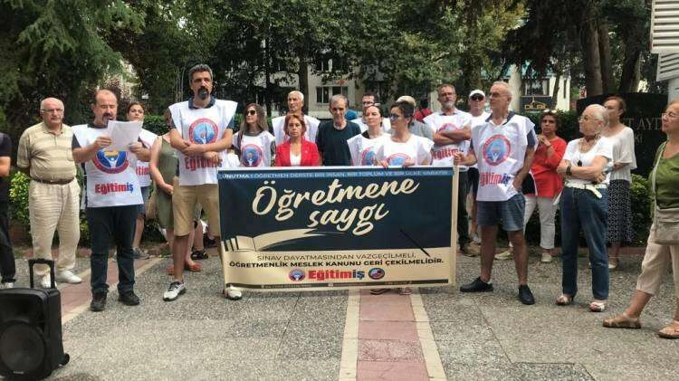 Kısa adı ÖMT olan Öğretmenlik Meslek Kanunu’nun öğretmenlerin sorunlarını iyileştirmek yerine sırtlarındaki yükü daha da ağırlaştıracağını söyleyen Eğitim-İş Sendikası Yalova İl Temsilciliği üyeleri Cevdet Aydın Parkı önünde bir basın açıklaması yaptılar. Açıklamayı Eğitim-İş Sendikası Yalova İl Temsilcisi Mustafa Aşina okudu. Aşina açıklamada şu sözlere yer verdi, “Bizler, Cumhuriyet aydınlanmasının ve onun önderi Başöğretmenimiz Mustafa Kemal Atatürk’ün ve devrimlerinin yılmaz savunucusu eğitimcileriz. Bizler geleceğin mimarlarıyız. Bizler öğretmenleriz. Ve ne acıdır ki bugün burada mesleğimizin itibarını, emeğimizin onurunu korumak için bulunuyoruz. Öğretmene danışılmaya bile lütfedilmeden, kuytu köşelerde yandaş sendikadan olur alınarak, Saray’dan inme biçimde hayatımıza sokulan Öğretmenlik Meslek Kanunu, bizlerin sorunlarını iyileştirmek bir yana dursun; omzumuzdaki yükleri ağırlaştıracak ve mesleğimizi itibarsızlaştıracaktır. İktidar, torba yasalardan da aşina olduğumuz bir taktikle, bu meslek kanununda da en büyük felaketleri en parlak paketlerle sarmalama yöntemine gitmiştir. Bu kanun hukuksuzdur. Çünkü öğretmenliğin bir uzmanlık mesleği olduğunun altını çizen ilgili yasalarla çelişmektedir. Hukuksuzdur çünkü her öğretmen uzmandır ve uzmanlık belgesi de diplomasıdır. Hukuksuzdur çünkü hayata geçerse eşit işe eşit ücret ilkesi okullarda tamamen tarihe karışacaktır. Hukuksuzdur, çünkü hukukun temel ilkeleri gereğince kazanılmış haklar geri alınamaz. Nasıl bir gecede mühendislere artık teknikersiniz denemiyorsa, öğretmenlere de artık uzman değilsiniz denemez! Bu kanun adaletsizdir. Kanun zaten sözleşmeli, ücretli, kadrolu diye kategorize edilerek sömürülen öğretmenleri bu kez de uzman öğretmen, başöğretmen diye bölmeyi hedeflemektedir. Bu kanun tehlikelidir çünkü tahribatı sadece öğretmenlere değil tüm eğitim sistemine yönelik olacaktır. Öğrenciler ve veliler dahi, hangi unvana sahip öğretmenlerin sınıfında eğitim gördüğüne göre ayrışacaktır. Buradan suni bir rekabet ve muhtemeldir ki tıpkı bağış adı altında toplanan kayıt paraları gibi, illegal bir ekonomi doğacaktır. Bu kanun hadsizdir çünkü her şeyden önce bu ülkenin bir tane Başöğretmeni olduğu ve bizim muradımızın da O Başöğretmen’in unvanını paylaşmak değil O’nun mirasına sahip çıkmak olduğu gerçeğini hiçe saymaktadır. Hadsizdir çünkü daha eğitimci bile değilken Milli Eğitim Bakanı olmayı kabul etmiş, en yakın kadrolarına tahsili alakasız insanları atamış bir zatın, öğretmenin “yeterliliğine” dair ahkâm kesmesi kabul edilemez. Kanunun dayattığı bu sınavların adında “yeterlilik” kelimesinin kullanılması bile öğretmene üsten bakışın bir göstergesidir. Bu kanun hadsizdir çünkü Başöğretmen Atatürk’ün gelecek nesilleri emanet edecek kadar güvendiği öğretmenlerin yeterlilik adı altında ezberlerini ölçmeye çalışmaktadır.