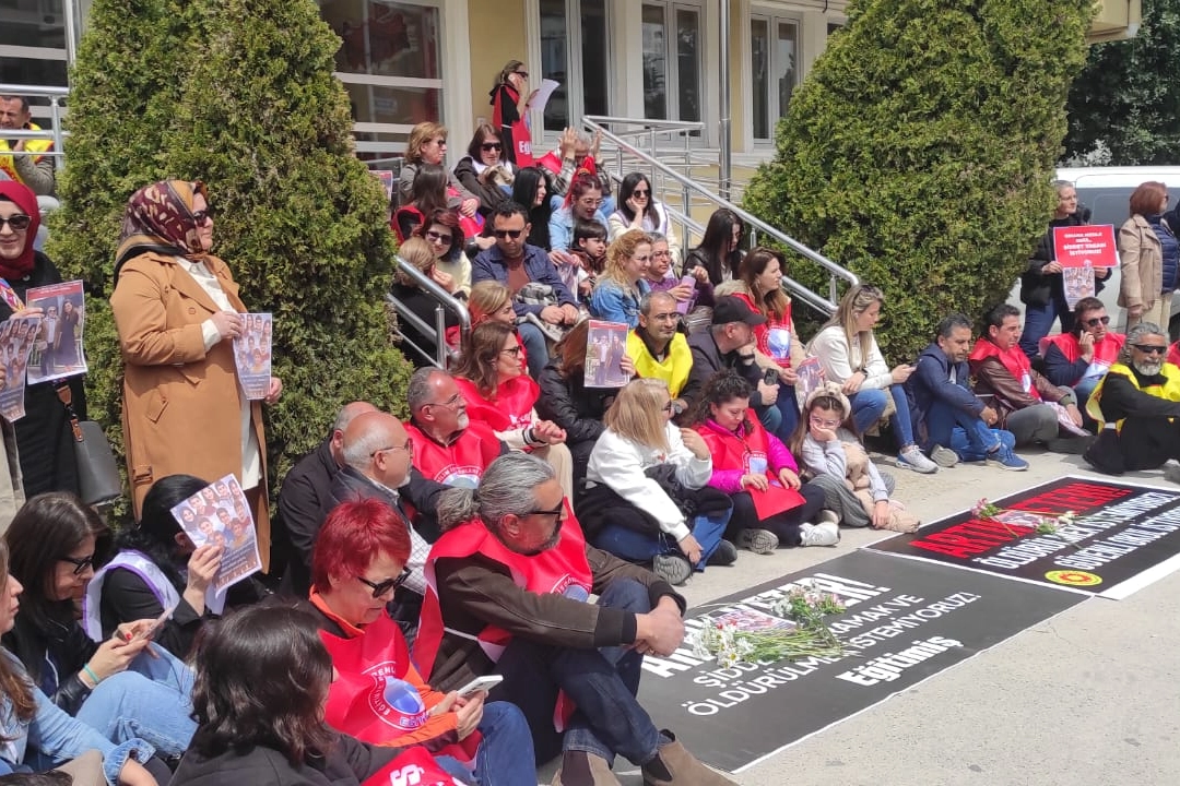 Müdürlük binası önünde toplanan eğitimciler, yere "Artık yeter; şiddete uğramak ve ölmek istemiyoruz" yazılı siyah bir pankart serdi. Saldırılarda yaşamını yitiren eğitim neferleri ve öğrencilerin anısına, pankartın üzerine yüzlerce karanfil bırakan öğretmenler, okulların artık güvenli alanlar olmaktan çıktığını vurguladı. Eyleme katılan öğretmenlerin siyah kıyafetler giyerek yas tuttukları görüldü.