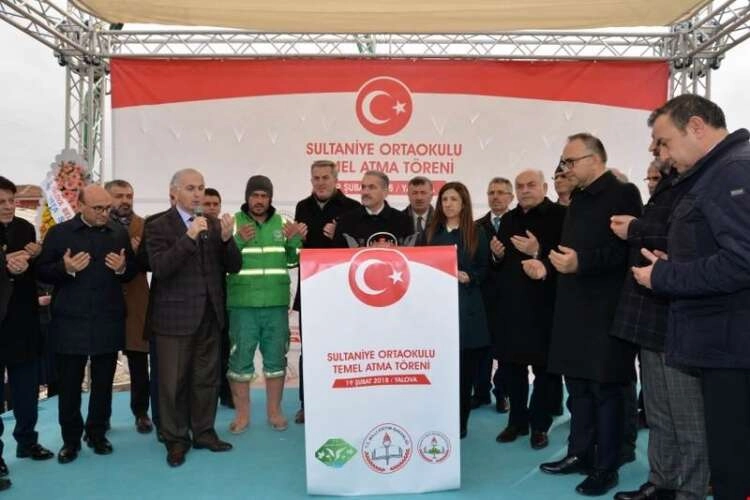 Konuşmaların ardından temel atma törenine geçildi. İl Müftüsü Turgut Açarİ tarafından yapılan duaların ardından temele ilk harcı koyan butona Yalova Valisi Tuğba Yılmaz, AK Parti Yalova İl Başkanı Yusuf Ziya Öztaba, AK Parti Yalova Milletvekili Fikri Demirel ve protokol mensupları birlikte bastılar. Yalova Valisi Tuğba Yılmaz inşaatı 270 günde tamamlanması gereken okulun, yeni eğitim öğretime yetiştirilmesi için yüklenici firma yetkilisinden 15 Ağustos’ta tamamlanacağının sözünü almayı da ihmal etmedi.