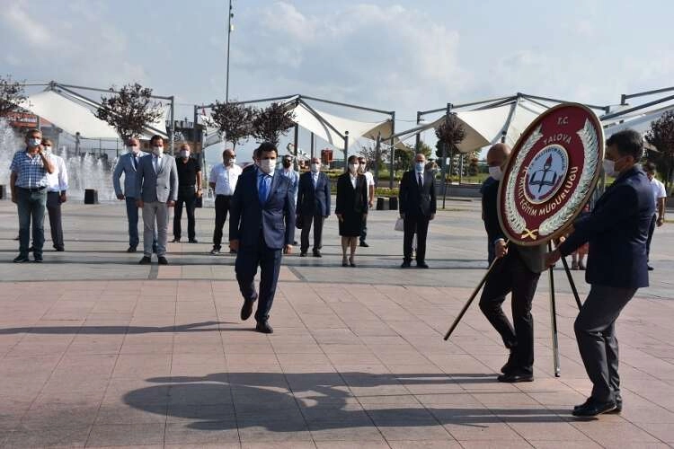 Törende Yalova Milli Eğitim Müdürü Dr. Abdülaziz Yeniyol tarafından Atatürk anıtına çelenk sunuldu.