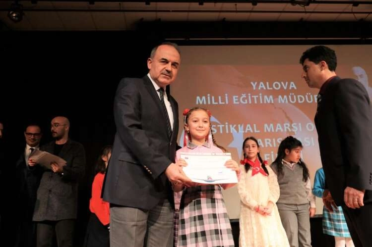 İstiklal Marşının Kabulünün 99. Yıl Dönümü ve Mehmet Akif Ersoy´u Anma Günü kapsamında düzenlenen “İstiklal Marşı’nı Okuma Yarışması” il genelindeki ilkokulların katılımıyla Halk Eğitim Merkezi Konferans Salonu’nda yapıldı. Yarışmada dereceye giren öğrencilere katılım belgeleri ve ödülleri Yalova Valisi Muammer Erol, İl Millî Eğitim Müdürü Ali Tosun ve İl Genel Meclisi Başkanı Hasan Soygüzel tarafından verildi. Ödül töreninde konuşma yapan İl Millî Eğitim Müdürü Ali Tosun; İstiklal Marşımızın içeriğinin tarihimizden gelen birikimle oluştuğunu vurgulayarak programın hazırlanmasında görev alan öğretmen ve öğrencilere teşekkür etti. Yarışmada dereceye giren öğrencileri tebrik eden Tosun, İstiklal Marşımızın hangi şartlar altında yazıldığının unutulmaması gerektiğini ifade etti.