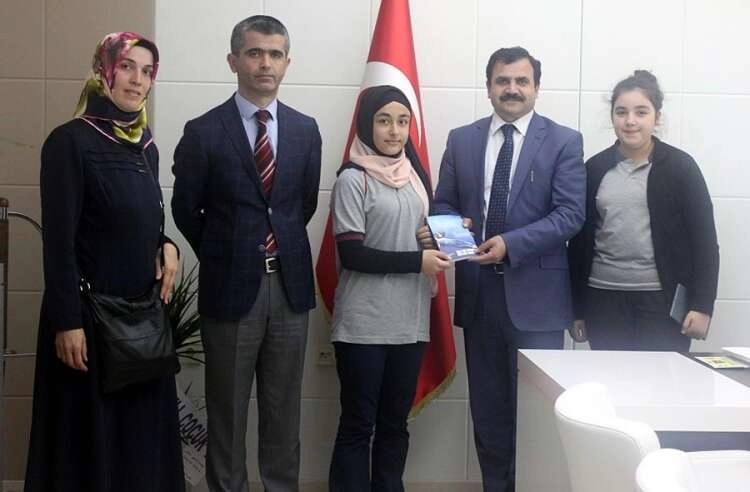 Yalova'da eğitim öğretim veren Saffet Çam Ortaokulu öğrencisi Elif Nur Kantar'ın yazdığı “Rüyadan Senle Uyanmak” adlı kitap ilgi görmeyi sürdürüyor. Küçük yaşta yazdığı kitapla büyük bir başarıya imza atan Elif Nur Kantar okul yöneticileri ile birlikte Yalova Milli Eğitim Müdürü Şerafettin Turan'ı ziyaret etti. 10 bin adet basılan kitabından 1 tanesini de Şerafettin Turan'a hediye eden öğrenci kitabın konusu ve yazım aşaması hakkında da bilgiler verdi. En büyük desteği ailesi ve okuldaki öğretmenlerinden gördüğünü dile getiren Saffet Çam Ortaokulu öğrencisi Elif Nur Kantar bundan sonraki kitabı için de şimdiden hazırlıklara başladığını vurguladı. Yalova Milli Eğitim Müdürü Şerafettin Turan ise başarısından dolayı öğrenciyi kutladı.