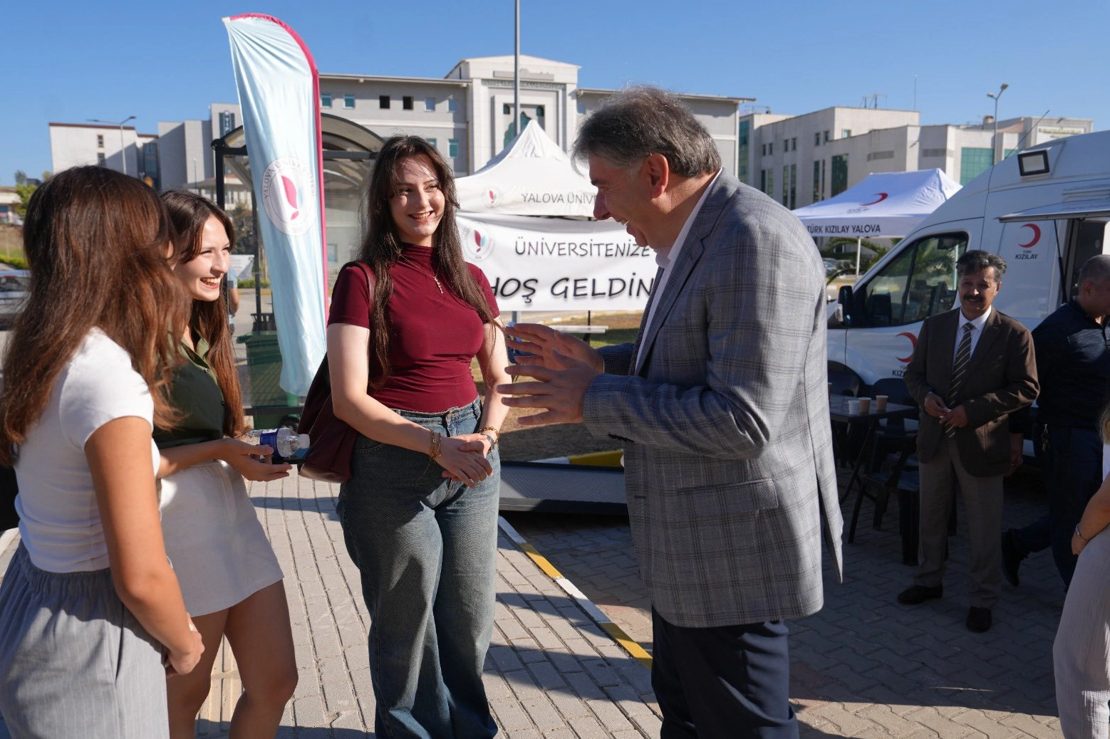 2025–2026 akademik yılına hazırlanan Yalova Üniversitesi’nde yeni dönem heyecanı başladı. Üniversiteyi bu yıl tercih eden öğrenciler kampüse adım atarken, Yalova Üniversitesi Rektörü Prof. Dr. Mehmet Bahçekapılı öğrencileri kampüs girişinde karşılayarak “Hoş geldiniz” dedi.