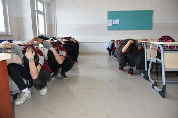 Bu kapsamda TOBB Mesleki ve Teknik Anadolu Lisesi’nde gerçekleştirilen tatbikat deprem anı uygulaması ile başladı. Siren sesiyle birlikte sınıf, laboratuvar ve kütüphane gibi ortamlarda bulunan öğrenciler çök-kapan-tutun hareketiyle depremin durmasını bekledi. Siren sesinin kesilmesinin ardından depremin bittiğini anlayan öğrenciler Okul Müdürü Ercan Gökkaya’nın anonsuyla tahliye aşamasına geçtiler. Öğrenciler önceden belirlenen tahliye güzergahını takip ederek tek sıra halinde yangın merdivenlerinden okulu boşalttı. Toplanma alanında sınıf öğretmenleri tarafından yoklama yapılarak eksik öğrenci, öğretmen ve personel tespiti yapıldı. Görevli personel tarafından okulun elektriği, suyu ve doğalgazı kesildi.