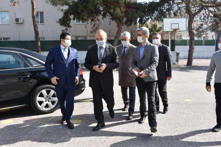 Yüzyüze eğitime bağlı olarak okullarda inceleme yapan Yalova Valisi Muammer Erol’a Yalova Milli Eğitim Müdürü Dr. Abdülaziz Yeniyol’da eşlik etti. Bu kapsamda Saffetçam Ortaokulu ve Şehit Osman Altınkuyu Anadolu Lisesi'ni ziyaret eden Vali Erol okullar ve okullarda sürdürülen çalışmalarla ilgili bilgi aldı. Yalova Milli Eğitim Müdürü Dr. Abdülaziz Yeniyol Vali Erol’a burada 2020-2021 eğitim öğretim yılı kapsamında okullarda planlan eğitim programları, yürütülen faaliyetler, uzaktan eğitim süreci, hijyen kuralları doğrultusunda okullarda yapılan temizlik çalışmaları ile dezenfektan ve maske kullanımları ile konusunda brifing verdi.