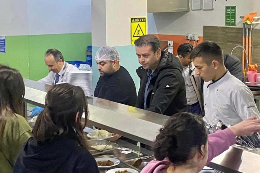 Ramazan dolayısıyla öğrencilerle birlikte iftar sofralarında buluşmaya devam eden Yalova Milli Eğitim Müdürü Halil İbrahim Akmeşe bu çerçevede Prof. Dr. Necmettin Erbakan Sosyal Bilimler Lisesi’nde yatılı olarak okuyan öğrenci ve öğretmenlere konuk oldu. İftar öncesinde öğrenci ve öğretmenlerle sohbet eden Akmeşe gençlerin taleplerini öğrendi. Öğretmen ve okul yöneticilerinden ise yapılan eğitim ve öğretim çalışmaları hakkında bilgiler alan Akmeşe ardından yemek tezgahının arkasına geçerek öğrenci ve öğretmenlere elleriyle yemek dağıtımı gerçekleştirdi. Ezanın okunması ile birlikte oruçlarını açan öğrencilerle birlikte yemek yiyen Akmeşe ardından çay eşliğinde bir süre daha sohbet etmeyi ihmal etmedi. Öğrencilere eğitim hayatlarında başarılar dileyen Akmeşe sonrasında yaptığı açıklamada ise, “Prof. Dr. Necmettin Erbakan Sosyal Bilimler Lisesi pansiyonunda yatılı kalan öğrencilerimiz ile öğretmen ve yöneticilerimizle iftar programında bir araya gelerek sofralarında misafir olduk. İftar sonrasında sohbet etme imkanı bulduğumuz gençlerimizin taleplerini not aldık. Öğrencilerimize eğitim hayatlarında başarılar diliyor, onlara emek veren mesai arkadaşlarıma teşekkür ediyorum.” dedi.