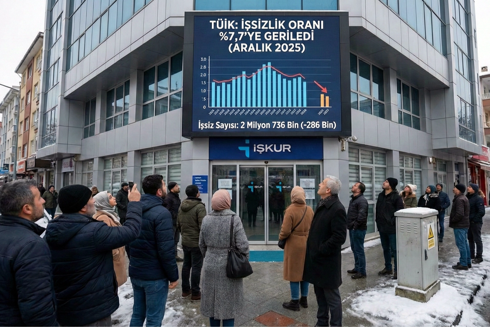 Türkiye İstatistik Kurumu (TÜİK), 2025 yılı Aralık ayına ilişkin İşgücü İstatistiklerini kamuoyuyla paylaştı. Hanehalkı İşgücü Araştırması sonuçlarına göre, 15 ve daha yukarı yaştaki kişilerde işsiz sayısı 2025 yılı Aralık ayında bir önceki aya kıyasla 286 bin kişi azalarak 2 milyon 736 bin kişi olarak kayıtlara geçti. Aynı dönemde işsizlik oranı ise 0,8 puanlık düşüşle yüzde 7,7 seviyesinde gerçekleşti. Cinsiyet dağılımına bakıldığında bu oran erkeklerde yüzde 6,3, kadınlarda ise yüzde 10,5 olarak tahmin edildi.