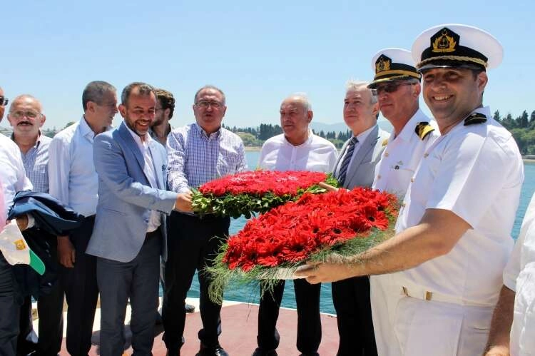 Konuşmanın ardından bir tekneye binen protokol mensupları denize açıldılar. Yalova Vali Vekili Yıldırım, Yalova Belediye Başkanı Vefa Salman ve Garnizon Komutanı Kur. Kd. Alb. Ayhan Gedik Yürüyen Köşk açıklarında denize çelenk bıraktılar.