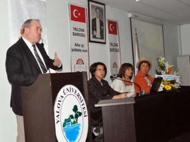 Yalova Barosu 8 Mart Dünya Kadınlar Günü dolayısıyla YÜSEM Konferans Salonunda Kadına Yönelik Şiddetin Nedenleri ve Önleme Yolları konulu bir panel düzenledi. Panele Psikolog Filiz Esin Boztaş ile Av. Habibe Yılmaz Kayar'ın konuşmacı olarak katıldılar. Panel öncesinde söz alan Yalova Barosu Başkanı Cevdet Bekler kadına şiddetin ne olursa olsun önlenebileceğine inanmadığını söyledi. Bekler konuşmasında, "Biz Yalova Barosu olarak tüm sosyal olaylarda toplumu bilinçlendirmeye çalışıyoruz. Şiddetin her türlüsüne karşıyız. Ama kadına yönelik şiddete daha da karşıyız. Çeşitli düzenlemelerle güncellenen kadına şiddetin önlenmesini sağlamayı hedefleyen 6284 sayılı kanun ile devletin bu konuya biraz daha fazla eğildiğini görüyor ve bundan mutluluk duyuyoruz. Ancak ne yaparsak yapalım kadına şiddetin önüne geçemiyoruz. Bundan sonra önleyebileceğimize de inanmıyorum. Bunun sebebi ise devletin yaptırım gücünün ve bu konuda ki eğitimin yetersiz oluşudur. Biz kadınlarımızın haklarını bilmeleri ve bu tip bir olay karşısında neler yapabileceklerini öğrenmeleri adına 100 soru, 100 cevap adlı bir kitap bastırdık. Bu kitapta kadınların bir şiddet olayına uğramaları durumunda neler yapacaklarını ve nasıl bir yol izleyeceklerini anlattık. Bu kitabı da kadınlarımıza ücretsiz dağıtıyoruz" dedi. Bekler'in ardından söz alan panelistlerden Avukat Habibe Yılmaz Kayar ise, "Kadına şiddet bir avuç kadına yönelik bir durum olarak algılanmaktadır. Ancak bu herkesin meselesi olmalı ve herkes çözüm üretmek adına çaba harcamalıdır. Kadına şiddeti anlamak için kendimizle yüzleşmeliyiz. Kadına yönelik şiddetin kaldırılması bu toplumun ilerlemesine ön ayak olacak bir meseledir. Kadına şiddet sadece evli ya da boşanmış kadınlara yönelik olarak algılanmamalıdır. Ülkemizde flört aşamasında ki kızlarımıza yönelik şiddette her geçen gün artmaktadır. Ailelerin bu anlamda kızlarına kapılarını kapamamaları ve onların sorunlarını paylaşmaları da çok önemlidir" diye konuştu.
