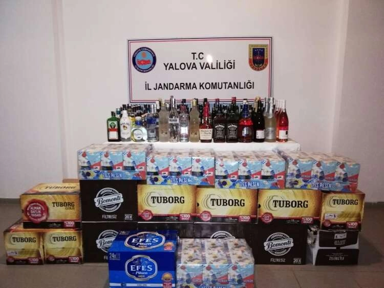 Yalova Jandarma Alay Komutanlığı ekipleri aldıkları ilde sahte içki üretimi yapıldığı ve bu içkilerin yılbaşında piyasaya sürüleceği istihbaratı değerlendirerek il merkezi ve ilçelerdeki 4 ayrı eve operasyon düzenledi. Operasyonda 420 litre sahte Rakı, 320 litre sahte şarap, 125 litre sahte viski olmak üzere toplamda 750 şişe kaçak içki ele geçirildi. Olayla ilgili 4 kişi ise gözaltına alındı. Ele geçirilen sahte içkiler ise imha edildi.