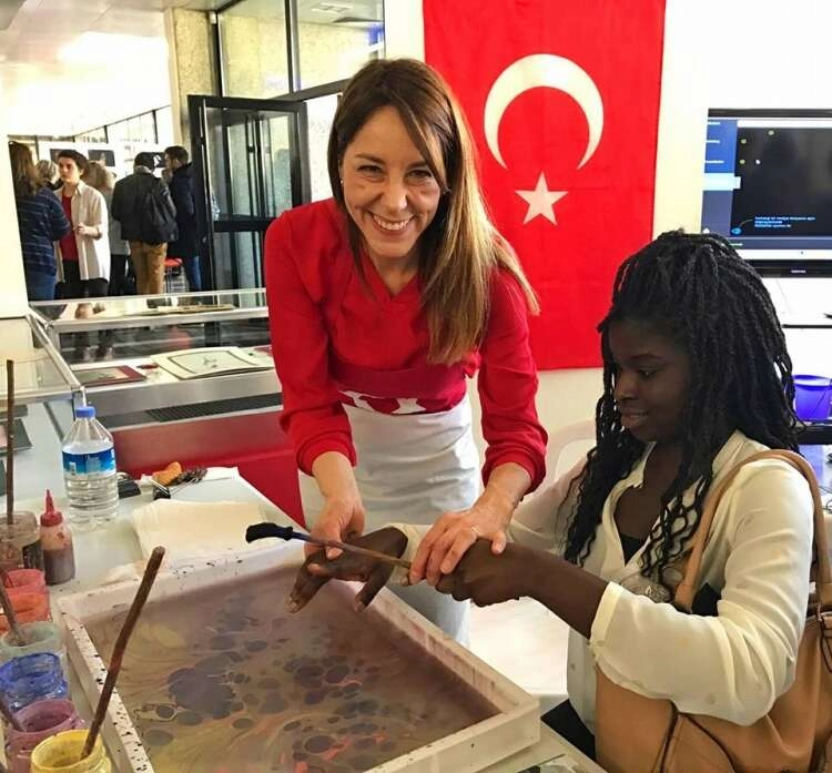 Yalovalı Ebru ve Minyatür sanatçısı Suna Koçal UNESCO tarafından Bordeaux Montaigne Üniversitesi'nde gerçekleşen Diller Bayramı'nda görevlendirilmişti. Fransa'ya giden sanatçı burada Ebru ve Minyatür Sanatından örnekler sergiledi. Koçal'ın ebru çalışmalarını yerli yabancı çok sayıda vatandaş ilgiyle izlediler. Konuklarına ebru yapmanın inceliklerini de gösteren Koçal'ın bir diğer konuğu ise Bordeaux başkonsolosu Cem Kahyaoglu oldu. Suna Koçal'la birlikte tekne başına geçen Kahyaoğlu Suna Koçal'dan ebrunun detaylarını öğrendi. Koçal, Kahyaoğlu tarafından yapılan ilk çalışmayı da yine konuğuna hediye etti.