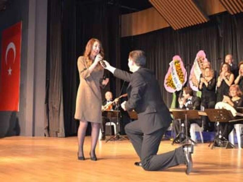 Konserin ortasında evlenme teklifi izleyen musiki severler ise genç çifte alkışlarıyla destek verdiler. Yalova ilginç bir evlenme teklifine sahne oldu. Yalova Musiki Derneği tarafından RDKM'de yerlerini alan musiki severler Şef Faruk Ömer Öskan yönetimindeki Yalova Musiki Derneği Korusu'nun seslendirdiği bir birinden güzel parçaları dinlemeye başladılar. Ardından sahne alan solist Emre Solak, "Fikrimin ince gülü" adlı eseri seslendirdi. Şarkının tamamlanmasının ardından şef Faruk Ömer Öskan ve seyircilerden özür dileyerek sevgilisi Özge Çavdar'ı sahneye aldı. Seyircilerin ve koristlerin şaşkın bakışları arasında 130 adet gülle sevgilisinin önünde diz çöken Emre Solak adlı sanatçı, cebinden çıkardığı yüzükler evlenme teklif etti. Sevgilisinin evlenme teklifi ile gözyaşlarına boğulan Özge Çavdar', Emre Solak'ın boynuna sarılarak evlenme teklifini kabul etti. Genç çiftin bu mutlu anına tanıklık eden seyirciler ise çifte alkışları ile destek verdiler. Konser evlenme teklifinin ardından devam etti.