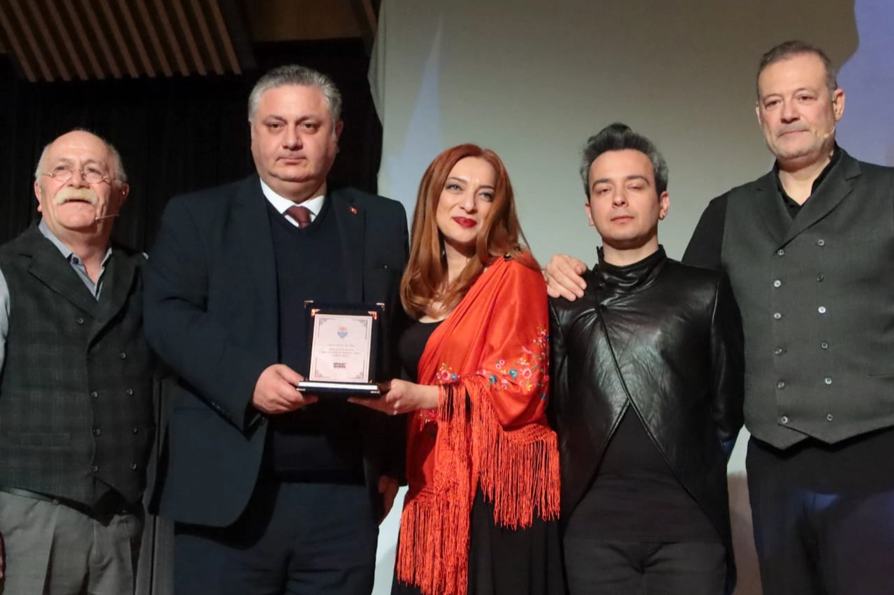 Oyunun sonunda Başkan Mehmet Gürel sahneye çıkarak oyuncuları etkili performansları için tebrik edip plaket ve çiçek takdiminde bulundu.