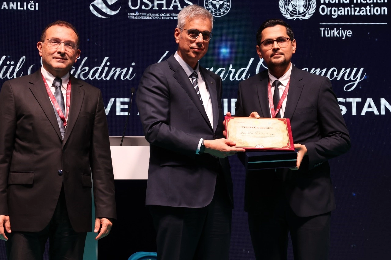 Sağlık Bakanı Prof. Dr. Kemal Memişoğlu tarafından Yalova Sağlık İl Müdürü Uzm. Dr. Ömer Kaşıkcı ve Yalova Eğitim ve Araştırma Hastanesi Başhekimi Doç. Dr. Hasan Ergenç’e plaket ve teşekkür belgesi takdim etti.