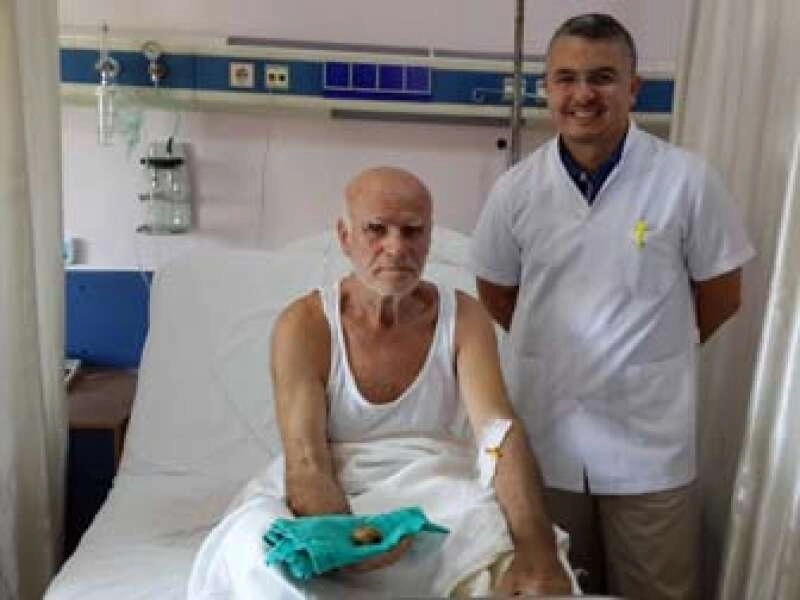İdrar yapamama şikayetiyle Op.Dr.Burak Acar’a muayene olan yaşlı hastanın , yapılan ultrasonda ve çekilen röntgenlerinde mesanesinde taş tespit edildi. Acilen yatışı yapılan hastanın mesanesindeki elma büyüklüğündeki taş açık ameliyat yöntemiyle alındı. Çok sık rastlanmayan operasyonu başarı ile gerçekleştiren Ürolog Op.Dr.Burak Acar operasyon şu sözlerle anlattı; “Hastanın mesanesinde taş vardı. Mesanesinde taş olan hastaları pnömotik sistemle tedavi ediyoruz. Ancak taşın büyük olduğu durumlarda açık ameliyat yöntemini kullanmak durumunda kalıyoruz. İsmail Hakkı beyin tedavisinde de açık ameliyat yöntemini kullandık. Hastanın mesanesinden 7cm büyüklüğünde taş çıkardık. Hastanın sağlık durumu şu an gayet iyi” dedi.Elinde elma büyüklüğündeki mesanesinden çıkarılan taşı ve yanında doktoruyla fotoğraf için poz veren İsmail Hakkı Selamet “Doktorum Burak Acar’dan Allah razı olsun, Yalova Devlet Hastanesi çalışanlarına da çok teşekkür ediyorum benimle çok iyi ilgilendiler” dedi.
