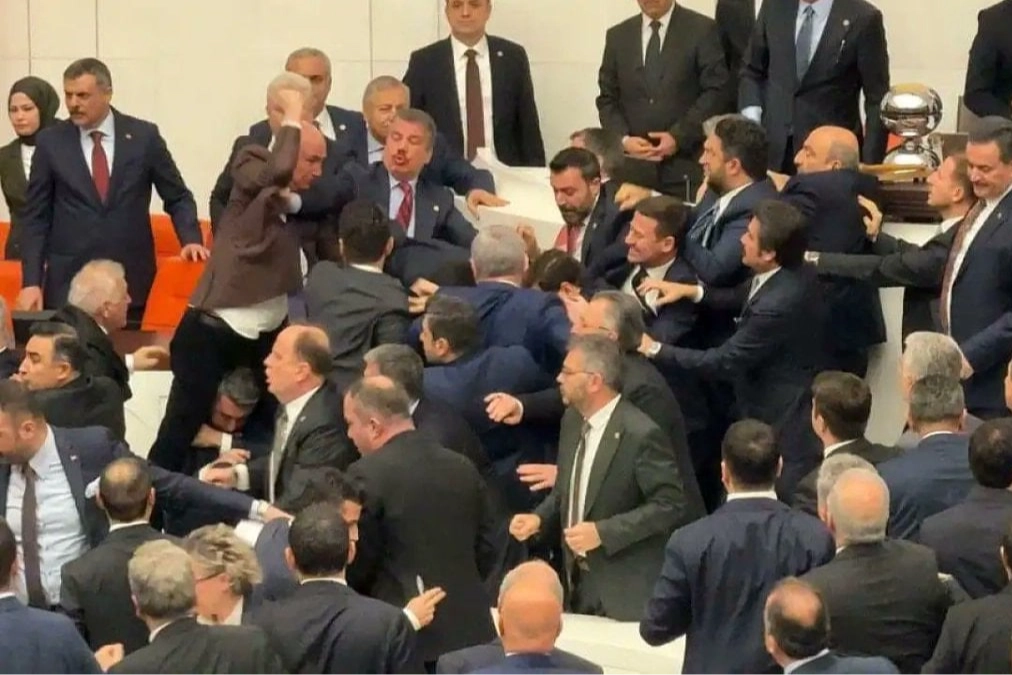 TBMM Genel Kurulu, tarihi ve gergin anlara sahne oldu. Adalet Bakanı Akın Gürlek’in yemin etmek üzere kürsüye yöneldiği sırada, CHP grubuna bağlı milletvekillerinin kürsüye yürüyerek yemini engellemeye çalışması tansiyonu yükseltti. Engelleme girişimi sonrası AK Parti ve CHP milletvekilleri arasında yumruklu kavga çıktı.
