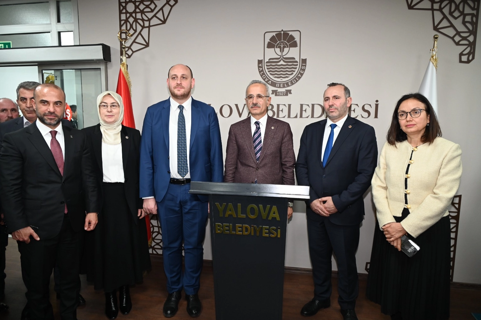 Gemi indirme törenine Vali Hülya Kaya, AK Parti Yalova milletvekilleri Ahmet Büyükgümüş, Meliha Akyol, Yalova Belediye Başkanı Mustafa Tutuk, Kıyı Emniyeti Genel Müdürü Mustafa Bankaoğlu, Sanmar Yönetim Kurulu Başkan Vekili Cem Seven, Deniz Ticaret Odası Yönetim Kurulu Başkanı Taner Kıran, AK Parti İl Başkanı Umut Güçlü de katıldı. Valiliği ziyaret etti Ulaştırma ve Altyapı Bakanı Abdulkadir Uraloğlu ardından Yalova Valiliği’ne geldi. Yalova Valisi Dr. Hülya Kaya, Yalova Belediye Başkanı Mustafa Tutuk ve il protokolü tarafından karşılanan Bakan Uraloğlu burada Valiliğin anı defterini de imzaladı. Sonrasında Yalova İl Koordinasyon Toplantısına katılarak burada Belediye Başkanlarını ve ilgili kurumların müdürlerini dinledi. Çevre yolu Ocak ayında ihaleye çıkacak Yalova Valiliğindeki toplantının çıkışında yürüyerek Yalova Belediyesi’ne gelen Ulaştırma ve Altyapı Bakanı Abdulkadir Uraloğlu, çiçeklerle karşılandı. Ardından Yalova Belediye Başkanı Mustafa Tutuk’un makamına geçen Bakan Uraloğlu’na burada çeşitli hediyeler takdim edildi. Bakan Uraloğlu makamdan çıkışında ise Yalova açısından çok önemli müjdelerin yer aldığı bir açıklama yaptı. Yalova açısından büyük bir öneme sahip olan Çevre Yolunun önümüzdeki Ocak ayında ihaleye çıkacağının müjdesini basın aracılığı ile kamuoyu ile paylaşan Bakan Uraloğlu, “Bugün Yalova’daydık ve Yalova’yı yöneten insanlarla birlikte gerekli değerlendirmeleri yaptık. Bürokratlarımız ve milletvekillerimiz de bu gezide bize eşlik ettiler. Yalova’ya yaptığımız güzel hizmetler var. Mesela burada bir tersanaler bölgesi var. Osmangazi köprüsünün bitimi ile o tersane ete kemiğe büründü. Bugün artık yerine sığmayacak bir duruma geldi. Orada memnuniyetle yeni inşaatların yapıldığını da gördüm. Orada ürettiğimiz deniz araçlarını dünyanın her yerine satıyoruz. Yine İzmir’e kadar olan otoyolu da bitirmiş olduk. Daha birkaç gün önce Yalova’ya çok yakın hizmet eden Sabiha Gökçen Havalimanının 2. Pistini de hizmete açtık. Yalova’da bölünmüş yol uzunluğunu 3-4 kat arttırdık. Yalova’da istediğimiz hızda bitiremediğimiz bir projemiz var. 45 kilometre olan Çınarcık-Armutlu yolunun şu ana kadar 35 kilometresini bitirdik. Geçmişte bazı sıkıntılarımız oldu. Orasını da çok yakın takibe aldık. Orası için bir ikmal ihalesi yapmamız gerekiyor. Önümüzdeki ay içerisinde o ikmal ihalesini yapacağız. Bundan sonra orasını Yalova, Çınarcık ve Armutlu’nun gündeminden çıkartmış olacağız. Bir sonraki ziyaretlerimizde de orasının ne kadar hızlı ilerlediğini görmüş olacağız. Yine Doğu-Batı aksında şehrimizde halen 1 ana cadde var. Mahalli trafik ve ilçelere giden trafik de hep buradan hareket ediyor. Burasının da şehir için yeterli olmadığını biz görmüştük. Bu nedenle de bir çevre yolu projesi hazırlamıştık. Burada Valiliğimizi, Belediye Başkanlığımızın koordinasyonunda ve milletvekillerimizin de çok yakın takibinde olan bir projeyi bitirdik. Bu projeyi yatırım programına da aldık. Önümüzdeki ay yani 2024 yılında onun ilanını da yapıyoruz. Yıl içerisinde de projeye başlamış olacağız. Dolayısıyla transit trafikle, şehiriçi trafiği birbirinden ayırarak rahatlatmış ve kapasitesini geliştirmiş olacağız. Ayrıca OSB alanlarının bağlantı yollarıyla kılıç yolunda bir demir yolu bağlantısı olabilir mi bunları konuşuyoruz. Gerekli notlarımızı aldık. Geçtiğimiz günlerde yaşanan fırtınalarda zarar gören balıkçı barınaklarımız ve son yıllarda artan kıyı yapıları ile ilgili de tespitlerimizi yaptık. Onlarında yatırım planlarına alınmasından tutun da projelerinin yapılmasına kadar hızla onları da tamamlayacağız. inşallah önümüzdeki 31 Mart Yerel Seçimlerinde de Yalova’yı tanıştırdığımız AK Parti Belediyeciliği ile bundan sonra da daha üst seviyede devam ederek hizmetlerimizi sürdüreceğiz” dedi. Bakan Uraloğlu buradaki açıklamasının ardından yürüyerek AK parti İl Binasına geçti. Bakan Uraloğlu burada partilerle bir toplantı yaparak istişarede bulundu. Bakan Uraloğlu’nun Yalova’da ki son durağı ise MHP Yalova İl Başkanlığı oldu.