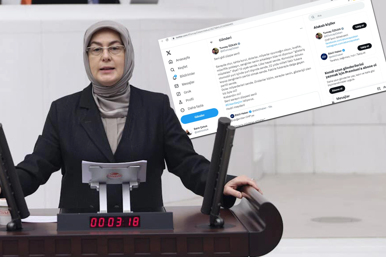Tuncay Özkan, sosyal medya üzerinden Cumhurbaşkanı Erdoğan'ı hedef alarak, sarayda lüks bir yaşam sürdüğünü ve ülkenin fakirleşmesine neden olduğunu öne sürmüştü. Özkan’ın bu sözleri, Meliha Akyol ve birçok AK Parti milletvekili tarafından tepkiyle karşılandı.