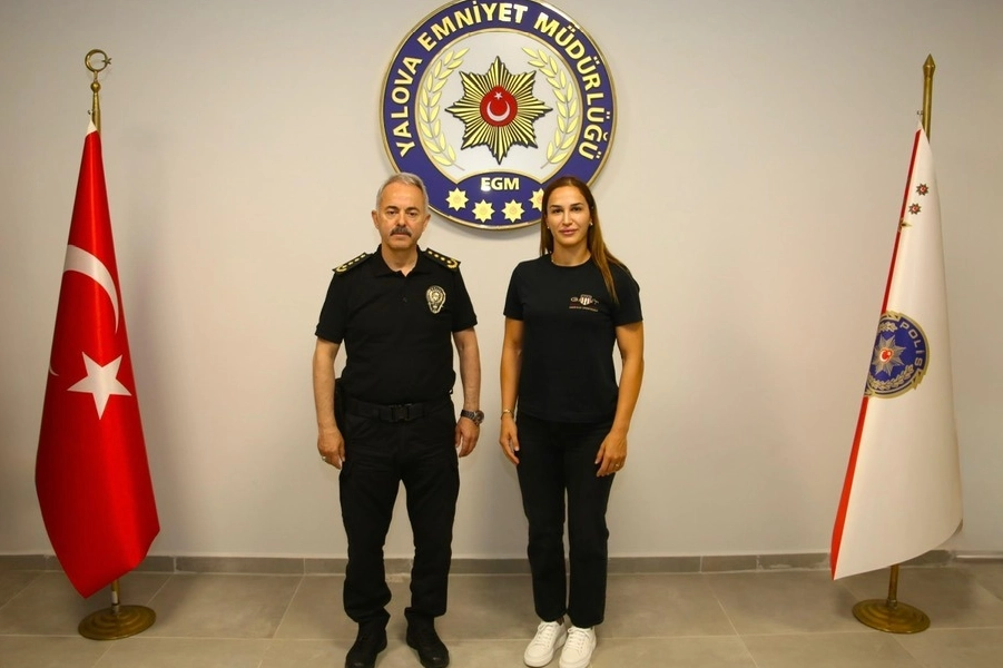 Paris 2024 Olimpiyat Oyunları’nda bronz madalya kazanan, 2023 Dünya Güreş Şampiyonası ve 2024 Avrupa Şampiyonası’nda altın madalyaya uzanan milli güreşçi Buse Tosun Çavuşoğlu, antrenörü Serkan Çavuşoğlu ile birlikte Yalova İl Emniyet Müdürü Ümit Bitirik’i ziyaret etti.