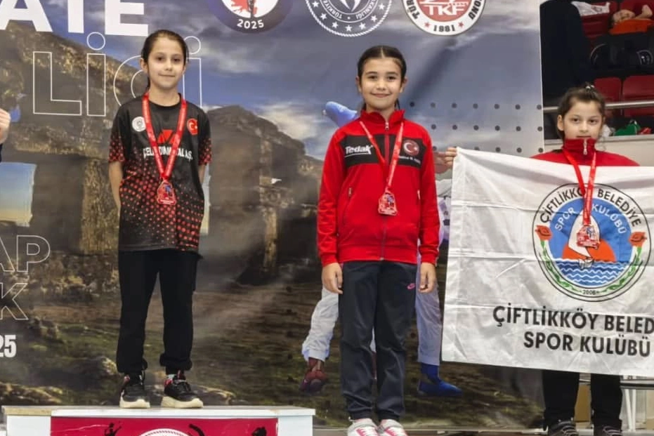 Türkiye’nin dört bir yanından gelen genç yeteneklerin hünerlerini sergilediği Ege Karate Ligi’nde minikler, yıldızlar ve büyükler kategorilerinde müsabakalar düzenlendi. 67 kulüpten 875 sporcunun madalya mücadelesi verdiği ligde Çiftlikköy Belediyespor adına 2015 doğumlular 30 kg. kategorisinde yarışan Mine İkra Öner, rakiplerini birer birer dize getirerek madalya kürsüsüne çıktı.