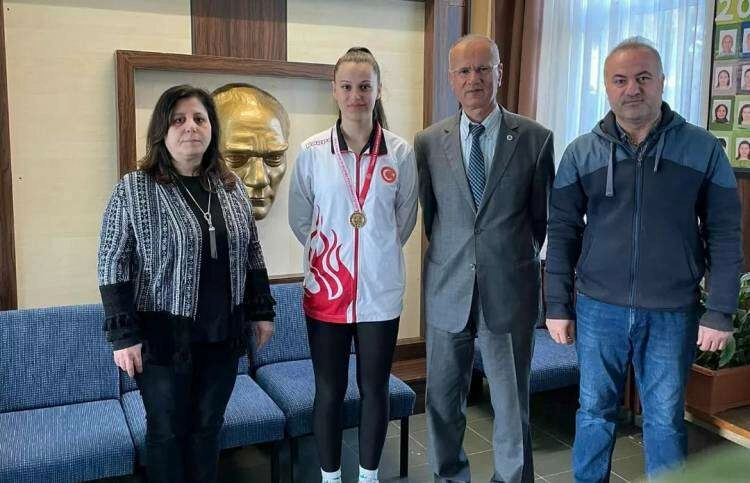 Okul Sporları Taekwondo Türkiye Şampiyonası 2-4 Nisan tarihleri arasında Antalya’nın Alanya ilçesinde gerçekleştirildi. 63 kiloda ilimizi temsil eden Yalova Anadolu Lisesi öğrencisi Nisanur Güler karşılaştığı tüm rakiplerini bir bir yenerek Türkiye Şampiyonu oldu. Şampiyonaya oldukça iyi bir şekilde hazırlandığını dile getiren Yalova Anadolu Lisesi öğrencisi Nisanur Güler, antrenörüne, beden eğitimi öğretmenleri ve okul yöneticilerine teşekkür etti. Elde ettiği büyük başarı sonrasında öğrenciyi ilk kutlayanlar arasında Yalova Anadolu Lisesi Müdürü Hayati Yılmaz da yer aldı. Nisanur Güler’in 2021 yılında ülkemizi de uluslararası şampiyonalarda temsil eden başarılı bir sporcu olduğunu hatırlatan Yılmaz, şimdide ilimizi ve Yalova Anadolu Lisesi’ni Türkiye Şampiyonası’nda kürsünün en üst basamağına çıkardığını ifade etti.