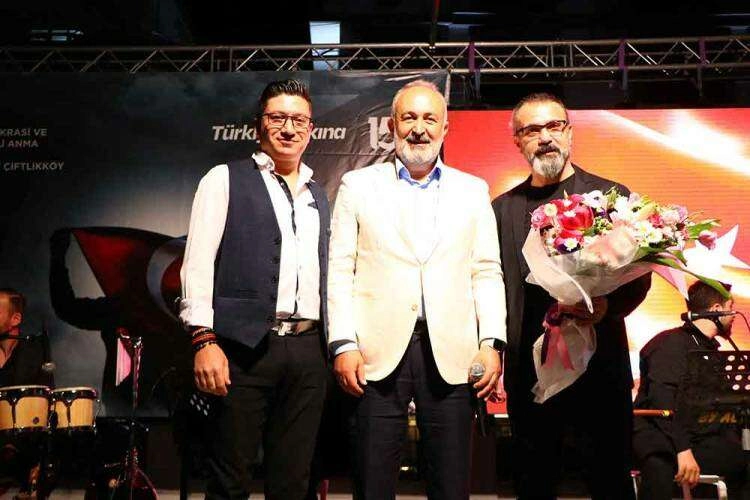 Programın devamında Tansu Can ve Erol Çalı’nın sesinde can bulan ‘Bir Saz Bir Söz’ grubunun eserleriyle Çiftlikköylüleri mest etti. Başkan Silpagar da, Abdurrahim Karakoç’un ‘İncitme’ adlı eserini canlı olarak seslendirdi. Programlarının sonunda ‘Bir Saz Bir Söz’ grubuna Kaymakam Ömer Bilgin ve Başkan Silpagar tarafından anı tabağı ve çiçek hediyeleri verildi. Gecede Mokamp’ta bulunan vatandaşlara dondurma, helva ve çorba ikramlarında da bulunuldu. 15 Temmuz hain darbe girişimi sırasında millete ihanete karşı birlik ruhu aşılayan ve manevi bir güç sağlayan sela sesi, saat 00.13 itibarıyla tüm Türkiye’deki binlerce camiden olduğu gibi, Çiftlikköy’den de yükseldi. Tutulan demokrasi nöbetinin ardından etkinlikler sona erdi.