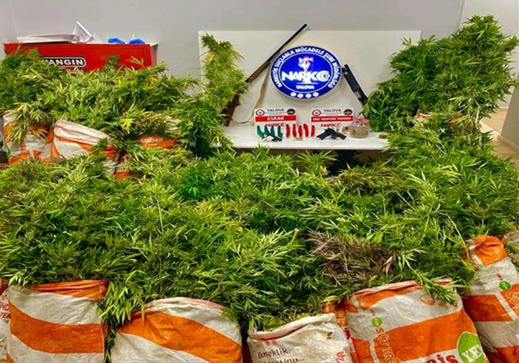 Aldığı bir istihbaratı değerlendirerek çalışmalara başlayan Emniyet Müdürlüğü Narkotik Suçlarla Mücadele Şube Müdürlüğü ekipleri Çiftlikköy ilçesi Kılıçköy’de belirlenen bir eve operasyon düzenledi. Operasyonda 3 katlı bir ev ve 5 sera içerisinde 426 kök Hint keneviri, 3 kilo 920 gram esrar, 7,65 mm ve 6,35mm çapında 2 tabanca, biri pompalı olmak kaydı ile 2 tüfek ve 83 fişek ele geçirildi. Gözaltına alınan T.A. ve A.V.S. emniyetteki işlemlerin ardından sevk edildikleri adliyede tutuklandı.
