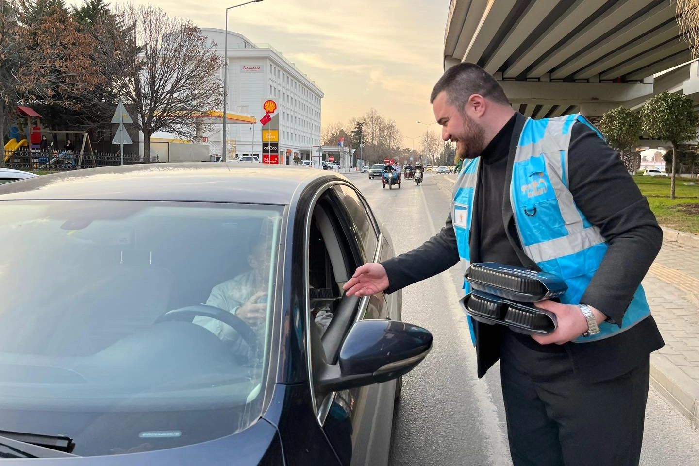 Tonami Meydanı'nda gerçekleştirilen etkinlikte, orucunu yolda açmak zorunda kalan sürücülere iftarlık ikramlar dağıtıldı.