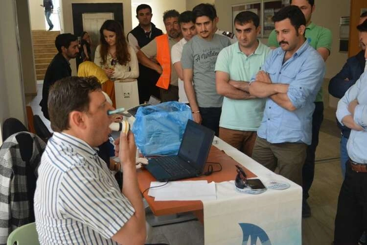 Yalova Halk Sağlığı İl Müdürlüğü halkın her kesimine yönelik sağlık bilgilendirme çalışmalarını sürdürüyor. Bu kapsamda Yalova Üniversitesi Öğretim Görevlilerine ve öğrencilerine konuk olan ekipler solunum fonksiyonu testi ve karbonmonoksit ölçümü gerçekleştirdiler. Testleri Bulaşıcı Olmayan Hastalıklar ve Programlar Kanser Şubesinde görev yapan Ayten Alp, Recep Baynaz ve Rukiye Saybo gerçekleştirdi. Testlerde sorun görülen öğrenci ve öğretim görevlileri ise hastanelere yönlendirildi. Test hakkında bilgiler de veren Yalova Halk Sağlığı İl Müdürlüğü uzmanları, "Akciğerlerin bazı hastalıklarında; ağır astım krizlerinde, KOAH (siga raya bağlı havayollarının kronik daraltıcı hastalığı) krizlerinde, akciğerlerin völümünü azaltan hastalıklarında, alveoller ve/veya damarlar oksijenin arterlere etkin geçişini sağlayamazlar. Dokularımıza yeterince oksijen ulaşmaz ise bu dokular görevlerini iyi yapamazlar. Kalp dokumuz oksijenden yoksun kalırsa çarpıntı başlar, efor esnasında göğüs ön duvarında ağrı oluşur. Beyin oksijenden yeterince yararlanamazsa sinirlilik, huzursuzluk başlar. Hastalarımız kolay terler. Akciğer hastalıklarında vücudumuzun ihtiyacı olan oksijen alınamadığı gibi oksijenin kullanılması sonucu oluşan zararlı gaz olan karbondioksitte atılamaz vücudumuzda birikir. Hastalarımızda dalgınlık, uyuklama hali ortaya çıkar. Arter kanımızdaki oksijenin (02), karbondioksitin (C02), karbondioksitin artması sonucu oluşan zararlı asitlerin, ve bunların ürünlerinin ölçülmesi için arterlerden kan alınır. Her arterden kan alınabilir. Ancak yüzeysel arterler bu iş için en uygun olanlardır. Kasıkta bulunan arter (femoral arter), dirsek iç yüzündeki arter (brakial arter) ve başparmağımızın hizasında bileğimizde (radial arter) bulunan arter bu iş için uygundur.
