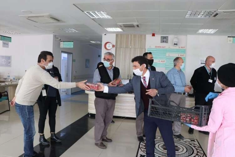Coronavirüs ile mücadele kapsamında göstermiş oldukları üstün hizmet ve çabalarından dolayı Altınova Çilek firması, sağlık çalışanlarına coronavirüs tedbirleri alınarak çilek ikramı yaptı.