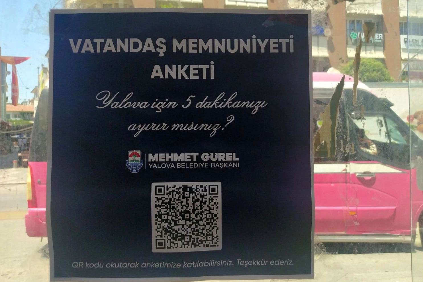 Yalova Belediyesi resmi sitesi üzerinden ve duraklar ile halkın yoğun olduğu noktalara asılan minik afişlerle vatandaşların ileriye yönelik görüşlerini alınmaya başladı. Vatandaş Memnuniyet Anketi’nin 2025-2029stratejik plan çalışmaları için bir yol haritası çizmesi amaçlanıyor. Vatandaşlar duraklara asılan Memnuniyet Anketi’ne afişte yer alan barkotu okuttuktan sonra oy kullanarak katılabiliyorlar. Ankete katılmaları yönünde vatandaşlara çağrıda bulunan Yalova Belediye Başkanı Mehmet Gürel, “Değerli Yalova Halkı, Yalova Belediyesi olarak sizlere daha iyi hizmet verebilmek ve 2025-2029stratejik plan çalışmalarında kullanılmak üzere görüşlerinizi önemsiyoruz. Bu anketle, belediyemizin faaliyet hizmetlerini değerlendirebilir, beklenti ve önerilerinizi bizlerle paylaşabilirsiniz. Katılımınız, hizmet kalitemizi artırmamızda bize yol gösterecektir. Anketimize zaman ayırdığınız için teşekkür ederiz” dedi.