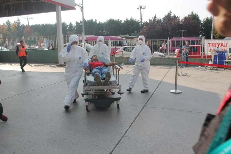 Senaryo gereği 112’ye gelen kaza ihbarı üzerine, 112 ambulansı, AFAD, İtfaiye ekibi ve UMKE KBRN timi olay yerine gönderilerek vakaya müdahale etti. AFAD ve İtfaiye ekibi olay yerinde yaralı olan tanker şoförüne müdahale ederek, dekontaminasyonu sağlandı ve UMKE KBRN timine teslim edildi. Gerekli müdahalenin yapılması üzerine 112 ambulansı ile Yalova Devlet Hastanesine ulaştırıldı. Olay yerinde bulunan ve kendi imkanları ile Acil Servise ulaşan yaralılar hastane içerisinde gerekli triaj alanından geçirilerek KBRN Ünitesine alındı, temizlendikten sonra İzolasyon alnında bir süre gözlemleri devam ettirildi. Olay, eş zamanlı olarak İl Sağlık Müdürlüğü ve Kriz merkezine de bildirildi.