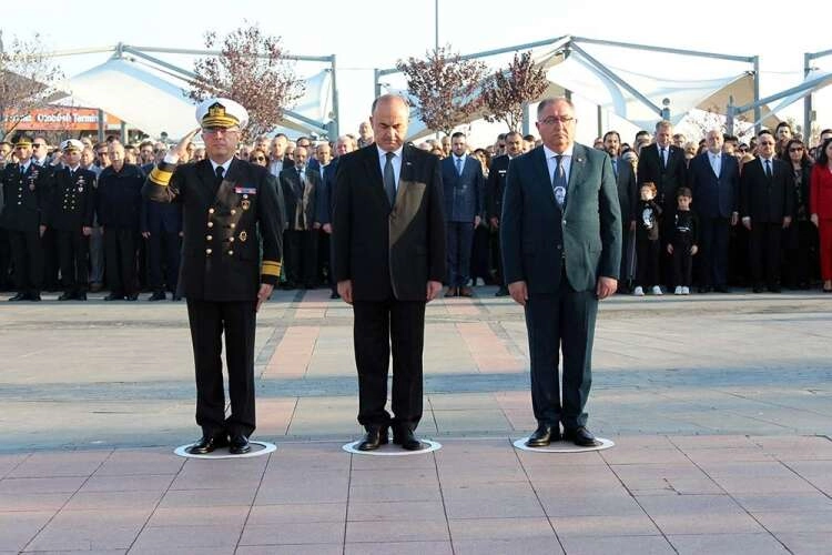 Cumhuriyet Meydanı’nda düzenlenen törende ilk olarak Atatürk Anıtı’na çelenk sunuldu. Daha sonra Gazi Mustafa Kemal’in ölüm saati olan 09.05’te saygı duruşu yapıldı ve ardından İstiklal Marşı okundu. Saat 09.05’i gösterdiğinde yoldan geçen sürücüler ve esnaflar da saygı duruşuna eşlik etti.