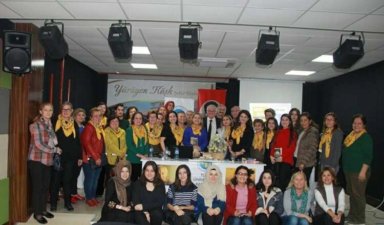 Yalova Üniversiteli Kadınlar Derneği tarafından düzenlenen "Sarı Yazmalı Söyleşi" etkinliğine konuşmacı olarak Hababam Sınıfı yazarı Rıfat Ilgaz'ın oğlu Yayıncı Yazar Aydın Ilgaz katıldı. Söyleşi öncesinde Yürüyen Köşk'ü gezen Aydın Ilgaz, Yürüyen Köşk'ün hikayesine hayran kaldı. Bu hikayenin mutlaka tüm ülkeye duyurulması gerektiğini vurgulayan Ilgaz, ulu önderin Yalova'da kaldığı dönemlerde kullandığı eşyaları da ilgiyle inceleyen Ilgaz ardından Halil İnacık Kültür Merkezi Konferans Salonu'na geçti. Burada Yalovalı bayanlarla buluşan Ilgaz'ı sarı yazmaları ile Yalovalı bayanlar yazara yoğun ilgi gösterdiler. Oldukça keyifli bir sohbetin gerçekleştiği etkinlikle ilgili bilgi aktaran Yalova Üniversiteli Kadınlar Derneği Başkanı Gülden Dönmez, "Yalovalı edebiyatseverler yayıncı ve yazar Aydın Ilgaz ile gerçekleştirdiğimiz bugünkü söyleşimizde iki saat boyunca bazen duygulu bazen keyifli anlar yaşadı. Rıfat Ilgaz'ın Sarı Yazma adlı romanından esinlenerek 'Sarı Yazmalı Söyleşi' olarak adlandırdığımız etkinliğimizde Rıfat Ilgaz'ın doğum yeri olan Cide'den getirdiğimiz sarı yazmalar misafirlerimize sürpriz oldu. Bugünün bu kadar güzel geçmesine sebep olan öncelikle konuğumuz Aydın Ilgaz'a ve söyleşinin moderatörü değerli üyemiz Özel Önder Öğretim Kurumları Edebiyat Öğretmeni Şennur Türk'e, dernek üyelerimize, destekçilerimize ve tüm misafirlerimize teşekkür ederiz" dedi.