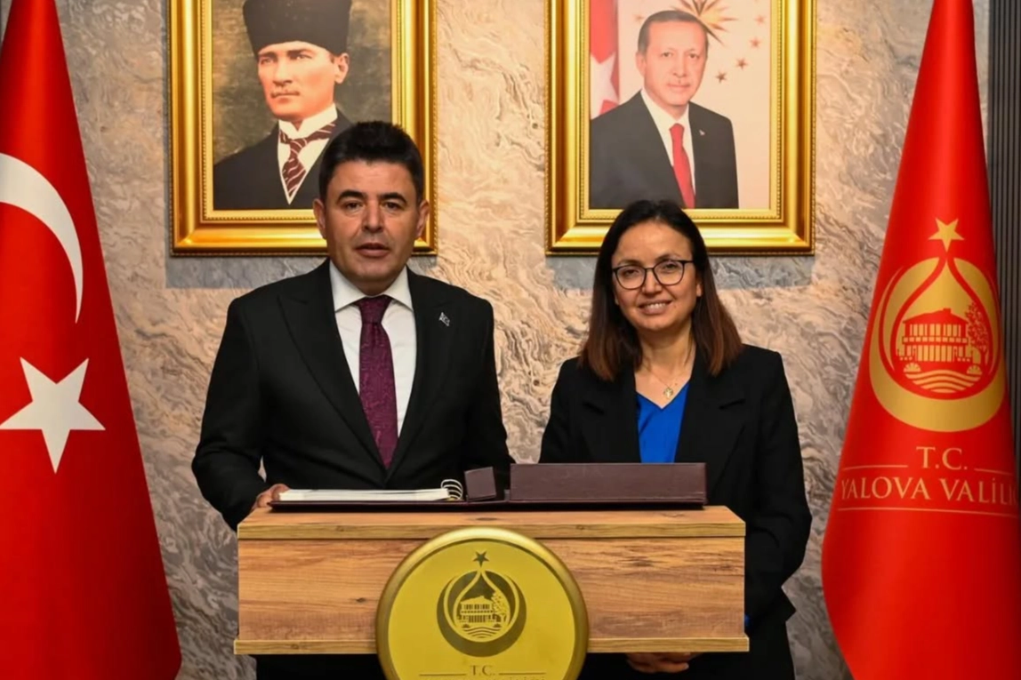 Ulaştırma ve Altyapı Bakan Yardımcısı Osman Boyraz, Yalova'ya gerçekleştirdiği ziyaret kapsamında Vali Dr. Hülya Kaya'yı makamında ziyaret etti. Valilik binasına gelişinde Vali Kaya tarafından karşılanan Bakan Yardımcısı, hatıra defterini imzaladıktan sonra Vali Kaya’dan bilgiler aldı.