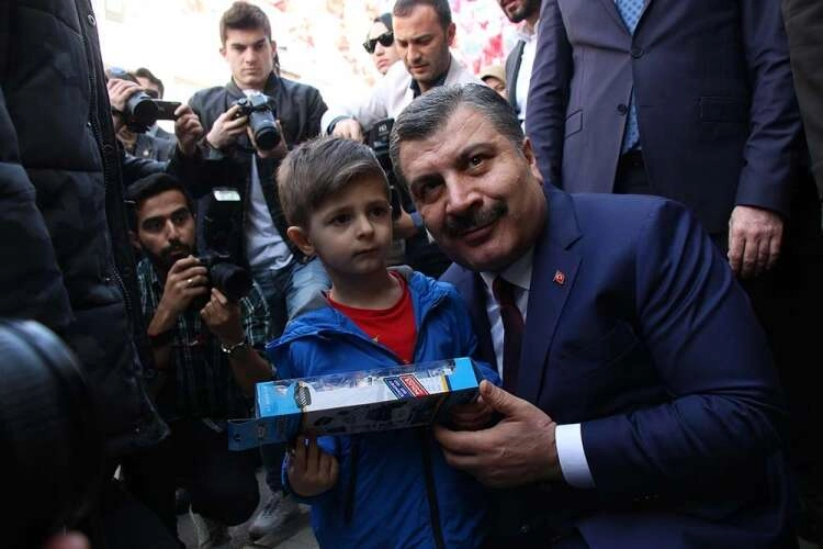 Bakan Koca Yalova programında esnaf ziyareti de gerçekleştirdi. Bu esnada sokakta gördüğü çocuklara oyuncak hediye eden Sağlık Bakanı Dr. Fahrettin Koca miniklerle fotoğraf çektirdi.