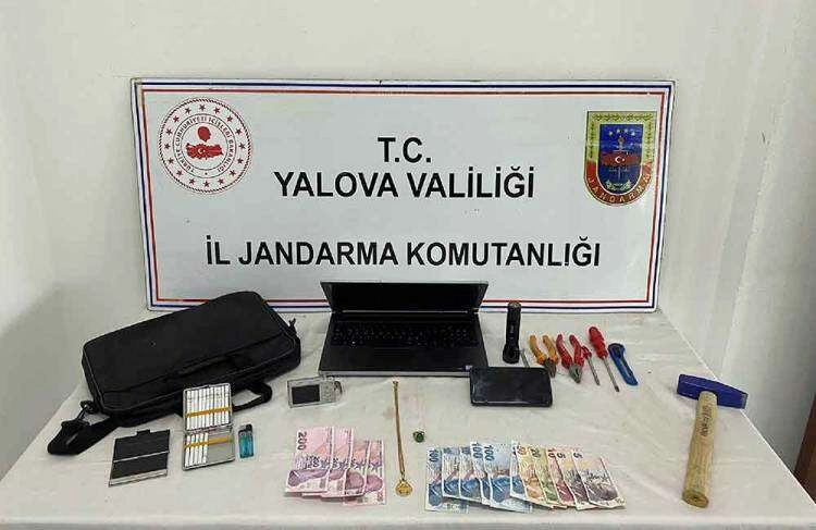 Tavşanlı beldesinde bir işyerine giren şahıs 1 adet kolye ile 9 bin TL’yi çaldı. İşyeri sahibi olayı fark ederek hemen jandarmaya haber verdi. Hırsızlık olayı sonrasında harekete geçen Jandarma Suç Araştırma Timi (JASAT) ile birlikte Jandarma Asayiş Timleri güvenlik kameralarının görüntülerini inceleyerek kısa sürede hırsızlık zanlısının eşkalini belirlediler. Şahsın A.Ç adlı kişi olduğunun tespiti sonrasında şahsı aramaya başlayan ekipler hırsızlık zanlısını beldede yakaladılar. Şahsın üst aramasında işyerinden çaldığı 1 adet altın kolye ile 9 bin TL ele geçirildi. Aramada ayrıca başka yerlerden çalınan 1 adet dizüstü bilgisayar, 1 adet cep telefonu ve bir adet fotoğraf makinesi de bulundu. Jandarma komutanlığına götürülen A.Ç sorgusunun ardından düzenlenen evraklarla sevk edildiği mahkemece tutuklanarak cezaevine gönderildi. Yalova Jandarma Komutanlığı tarafından yapılan açıklamada ise, “Yalova İl Jandarma Komutanlığı tüm birimleri ile vatandaşımızın can ve mal güvenliğini sağlamak maksadıyla, çalışmalarına aralıksız olarak devam edecektir” denildi.