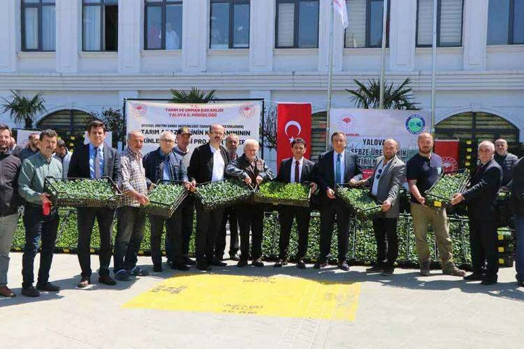 1 aşama tamamlandı Projenin 1. Aşamasının başarıyla tamamlandığını dile getiren Yalova Tarım ve Orman İl Müdürü Suat Parıldar sözlerine şu şekilde devam etti; “Çiftçilerimize dağıtılmak üzere 110 Kg. fasulye tohumu, fide yaptırılarak çiftçilerimize dağıtılmak üzere 80 bin adet Hıyar, 60 bin adet Biber, 20 bin adet kabak tohumu alındı. Bunun yanında merkez ilçe Kadıköy beldemiz çiftçilerinin katkısı ile yaklaşık 5 kg. yazlık pazı ve yazlık kara lahana tohumu da 120 bin adet pazı, 30 bin adet kara lahana fidesi üretmek üzere projeye dahil edilerek 1. aşaması tamamlandı. Projemizin ikinci aşamasında Bakanlığımız bütçesinden ve çiftçi katkısı ile alınmış olan Hıyar, Biber, Kabak, Pazı ve Kara Lahana tohumları Yalova İl Özel İdaresinden sağlanan 158 bin TL. kaynak ile fide yapılmak üzere ilimizdeki fide firmasına üretim yaptırılmıştır” Ardından çiftçilere fidelerini Yalova Vali Yardımcısı Mehmet Bahattin Atçı, İl Özel İdaresi Genel Sekreteri Ümit Yılmaz ile Yalova Tarım ve Orman İl Müdürü Suat Parıldar birlikte teslim ettiler.