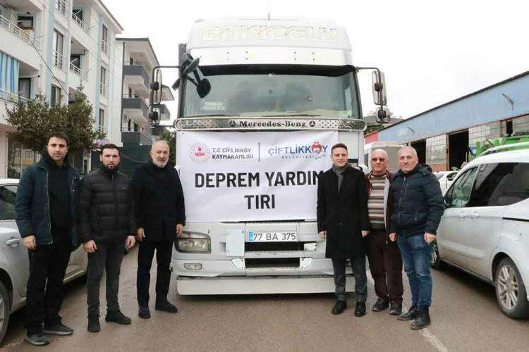 İlçe halkının büyük destek verdiği Çiftlikköy Kaymakamlığı ve Çiftlikköy Belediyesi uhdesindeki yardım kampanyasında bir günlük yoğun çalışmanın ardından doldurulan bir tır ve bir kamyonet dolusu yardım malzemesi, Çiftlikköy Kaymakamı Ömer Bilgin ve Çiftlikköy Belediye Başkanı Ali Murat Silpagar tarafından yolcu edildi. Başkan Silpagar, kısa zamanda Çiftlikköy Yardım Merkezi’ne ulaştırılan yardım malzemelerinin ekipler tarafından listelenip kolilenerek araçlara yüklendiğini dile getirerek, gönderilen malzemeler hakkında bilgi verdi.