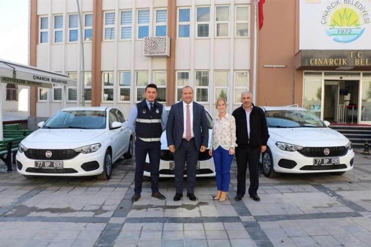 Çınarcık Belediyesi birimlerin ihtiyaçları doğrultusunda alınan araçlara ilave olarak Fiat Egea marka 3 adet hizmet aracı belediye araç parkı bünyesine katıldı.Belediyenin tamamen öz sermayesiyle alınan 3 adet yeni araç Başkan Avni Kurt tarafından birim müdürlerine ve amirlerine teslim edildi. Burada kısa bir konuşma yapan Çınarcık Belediye Başkanı Avni Kurt, "Yeni araçlarımız ilçemize hayırlı olsun. Filomuza katılan 3 yeni araç tamamen öz sermayemiz ile bünyemize katılarak ; Yazı işleri Müdürlüğü , İmar ve Şehircilik Müdürlüğü ve Zabıta Amirliği tarafından kullanılmaya başlanacak. Hizmetlerimizin vatandaşa ulaşımı için araç filomuzu genişletmeye devam ediyoruz. Her şey daha güzel bir Çınarcık için'' dedi.