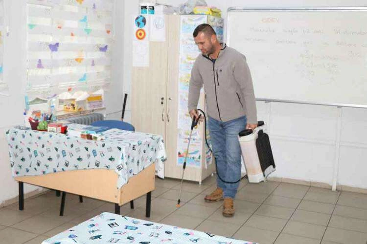 Çınarcık Belediyesi ilçede eğitimin sağlıklı bir şekilde devam etmesine katkı sunmayı sürdürüyor. Hüdaverdi Aydın İlkokulu yöneticileri ve velileri tarafından gelen bir talep nedeni ile gerekli çalışmaları başlatan Çınarcık Belediyesi okulun sınıflarında dezenfeksiyon sağlamak adına ilaçlama yaptı. Çınarcık Belediyesi Veterinerlik Hizmetleri ilaçlama birimi tarafından gerçekleşen çalışma ile sınıflar mikroplardan arındırıldı. Ayrıca öğrencilerin toplu olarak kullandıkları koridorlar, tuvaletler, kütüphane ile öğretmenler odası ve idari bölümler de detaylı bir şekilde ilaçlandı. Hüdaverdi Aydın İlkokulundan gelen talep doğrultusunda, okuldaki tüm sınıflar mikrop ve virüslere karşı Çınarcık Belediyesi ekipleri tarafından ilaçlandı.