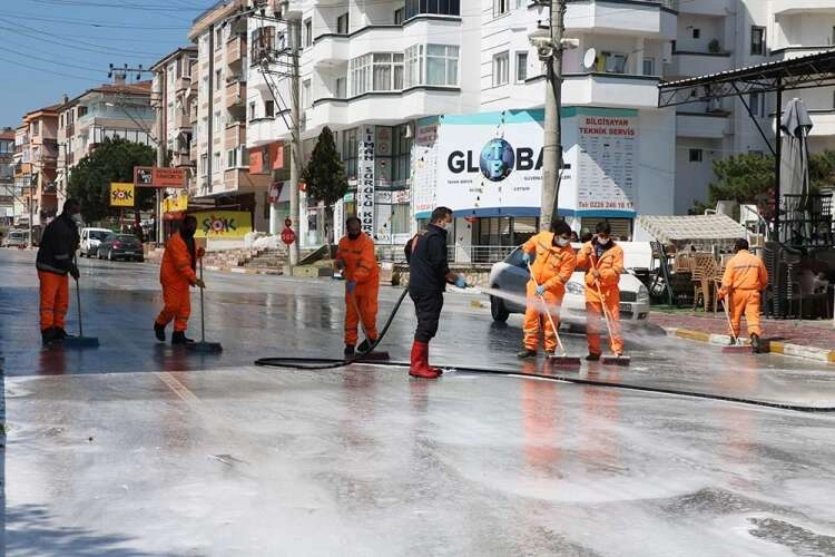 Çınarcık Belediyesi’nin Korona virüsle mücadelesi hız kesmeden devam ediyor. Bu kapsamda belediye ekipleri cadde ve sokaklara dağılarak dezenfeksiyon çalışması gerçekleştirdi. Onlarca işçinin ve aracın görev yaptığı çalışma kapsamında Hasanbaba Mahallesi, Coşkun Caddesi ve ara sokaklarını, Ahmet Sugün Caddesi ve ara sokaklarını, köy içi ve ara sokakları dezenfektan ve ilaçlı sularla yıkandı.