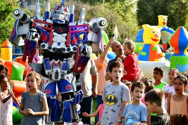 Yalova Belediyesi’nin çocuklara yönelik düzenlediği etkinlikler devam ediyor. Bu amaçla farklı mahallelerde gerçekleştirilen Açık Hava Çocuk Şenlikleri’nin bu seferki adresi ise Batı Sahil Bandı Etkinlik Alanı oldu. Kurulan devasa oyun alanları, bu alana gelen animatörler ve gerçekleştirilen etkinliklerle alan karnavalları aratmadı. Ailelerin çocukları ile tıka basa doldurduğu şenlik alanında çocuklara yüz boyama yapılırken, transformers kıyafeti giyen animatörler ise filmlerden fırlamışçasına minikleri heyecanlandırdı. Oyun ünitelerinde adeta tüm enerjilerini atan minikler doyasıya eğlendiler. Masal kahramanları ve çizgi film karakterlerinin kostümleri ile alanda dolaşan animatörler çocuklarla sohbet edip onlara unutulmaz bir eğlence yaşattılar. Saatlerce alanda eğlenen miniklerin anne ve babaları ise, “Belediyemizi yürekten kutluyoruz. Düzenlenen çocuk şenlikleri sayesinde çocuklarımız doyasıya eğleniyorlar. Onları bırakın bizler bile eğlencenin ritmine kapılıp, çocukluk yıllarımıza geri dönüyoruz. Bu etkinliklerin devam etmesini istiyoruz” dediler.