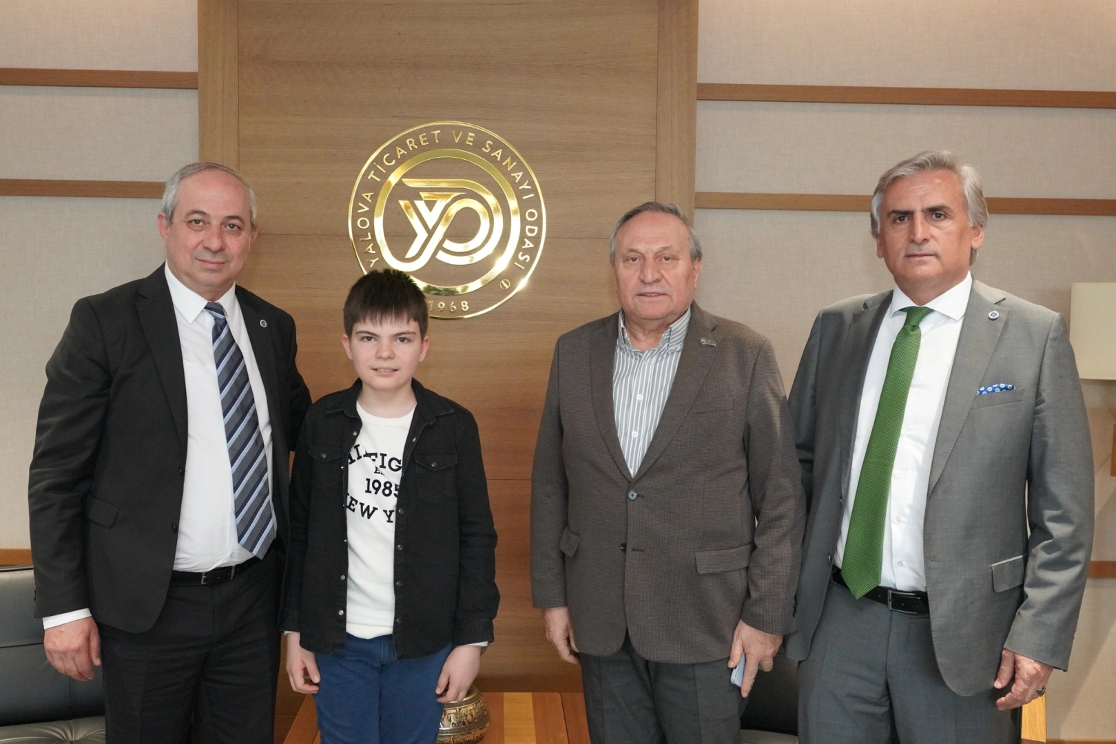 Robotik kodlama alanında ulusal ve uluslararası birçok başarıya imza atan ve son olarak dünya şampiyonu olan Efe Gürer, Yalova Ticaret ve Sanayi Odası (YTSO) Başkanı Cemil Demiryürek tarafından kabul edildi. Görüşmeye, Yalova Kent Konseyi Başkanı ve YTSO Yönetim Kurulu Üyesi Kenan Engin ile YTSO Akademi Kurulu Başkanı Köksal Ketenci de katıldı.
