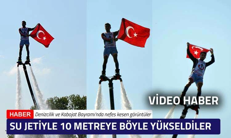 FlyBoard gösterisi hayran bıraktı Tören kapsamında bir FlyBoard gösterisi de gerçekleştirildi. Basınçlı su sayesinde yerden onlarca metre yükseğe çıkan FlyBoard ekibi akrobatik hareketlerle herkesi kendine hayran bıraktı. Protokol mensupları ve diğer teknelerde bulunan vatandaşlar da gösterileri ilgiyle takip ettiler. Kutlamalar Yat Limanında gerçekleştirilen kokteylin ardından sona erdi.