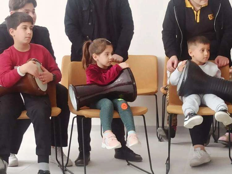 Bu çerçevede Yalova Gençlik Merkezi tarafından gerçekleştirilen ritim atölyesinde, minik depremzedeler çalınan parçalara darbukalarla ritim tutarak eşlik ettiler.