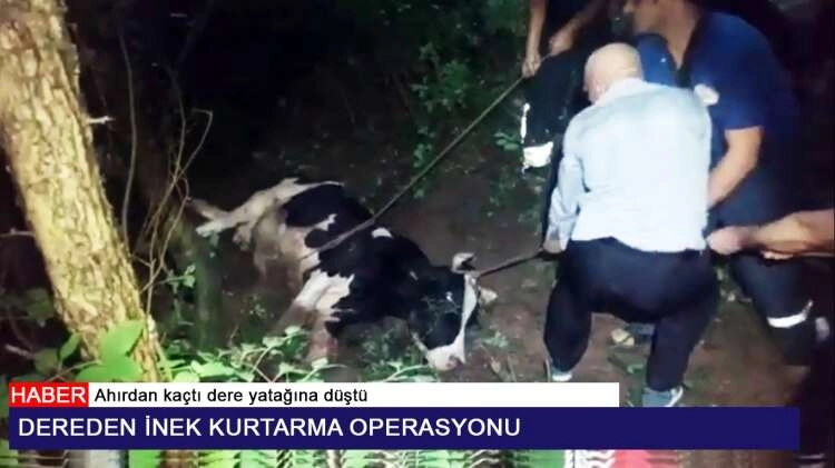 Safran Köyü’nde ahırdan kaçan inek gece olması nedeni ile köydeki bir dere yatağına yuvarlandı. Düşmenin etkisi ile yaralanan ineğin sahibi ise durum itfaiyeye bildirdi. Kısa süre içerisinde olay yerine ulaşan itfaiye yaralı hayvanı çıkartmak için çalışma başlattı. Yüzlerce kilo ağırlığındaki ineğe zarar vermeden düştüğü yerden çıkartmak için büyük bir çaba harcayan itfaiye ekipleri yaklaşık 1 saat süren çalışma ile hayvanı kurtarmayı başardı. Sahibine teslim edilen inek çağırılan veteriner tarafından da tedavi edildi. İneğin sahibi Yalova İtfaiyesi’ne teşekkür ederek, “Eğer onlar olmasa ineğin orada ölebilirdi. Çok uğraştılar. Allah onlardan razı olsun” dedi.