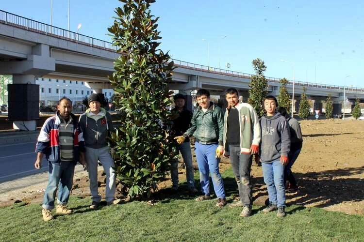 Tonami Meydanı çevre düzenleme çalışmaları tüm hızıyla devam ediyor. Köprülü kavşak çevresi ve alt kesiminde Manolya ağaçları, çalımsı bitkiler ve mevsimlik çiçeklerin dikim işlemleri devam ediyor. Bu çalışmaları ise Türkmenistan'dan gelen soydaş işçiler gerçekleştiriyor. Yaklaşık 25 kişilik ekip çim serme işlemlerinden ağaç ve çiçek ekim çalışmalarına kadar her işte canla başla mesai harcıyorlar. Türkiye'de ve Yalova'da olmaktan çok mutlu olduklarını belirten Türkmenler, "Yalova gerçekten çok güzel bir yer. Burada olmak bizi son derece mutlu ediyor. Burada Türk kardeşlerimizle birlikte çalışıyoruz. Yalova'nın en önemli noktalarından birisi olan Tonami Kavşağının güzelleştirilmesinde bizim de katımızın olmasında gurur duyuyoruz" dediler.