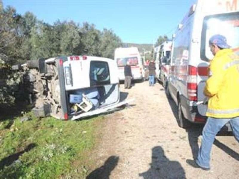 Yalova'daki özel bir fizik tedavi merkezine engelli hasta ve ailelerini taşıyan servis minibüsü, Bursa'nınİznik İlçesi'ne bağlı YörüklerKöyü'ndeki bir hastayı almak için giderken kaza yaptı. Zeytinliğe uçan servis minibüsünde can pazarı yaşandı. Araçta bulunan 12 kişiden aralarında engellilerin de bulunduğu 8 kişi yaralandı. Yaralılardan 2 kadının durumunun ciddi olduğu bildirildi.Kaza, bugün saat 10.30 sıralarında İznik'e bağlı Yörükler köyü yakınlarında meydana geldi. Yalova'daki özel bir fizik tedavi merkezine engelli vatandaşları taşıyan servis minibüsü, Orhangazi ve İznik'ten altığı hastalardan sonra Yörükler Köyü'ne doğru yola çıktı. Buradaki bir hastasını da alıp Yalova'ya dönmek isteyen Ahmet Arar (56) yönetimindeki 77 EK 273 plakalı servis minibüsü, köye gelmeden henüz belirlenemeyen nedenle kontrolden çıkarak zeytinliğe uçtu. İki zeytin ağacını parçalayan minibüste büyük panik yaşanırken, 8 kişi yaralandı.Çevreden yetişen vatandaşlar tarafından minibüsten çıkarılan ve bazıları engelli olan yaralılar zeytinliğe yatırıldı. Olay yerine İznik, Orhangazi ve Boyalıca'daki 112 Acil Servis ambulansları sevk edildi. 8 yaralı ambulanslarla İznik Devlet Hastanesi'ne kaldırıldı. Servis minibüsündeki bir engelli çocuğun, yardımına gelen kişinin kucağında ağlaması yürek burktu.